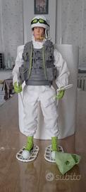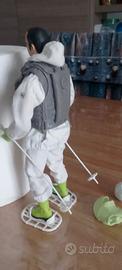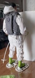 alpino della hero force con tuta bianca con stemma racchette bastoni e passa montagna gibbotto in gomma grigio alto cm 27