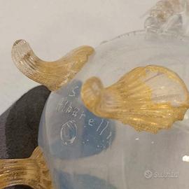 esterno con gocce di vetro applicate in vetro ed inclusioni dorate. Firma incisa