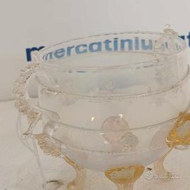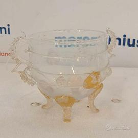 Alzatina in vetro di Murano. Alzatina a 4 piedini dorati in vetro bianco