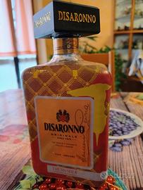 Bottiglia Amaretto di Saronno nella versione Trussardi Limited Edition, per collezionismo. Il contenuto è stato consumato.