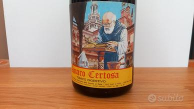 Vendo rara bottiglia d'epoca (anni '60) di Amaro Certosa, un autentico "Tonico Digestivo" prodotto dalla storica Spagenteria dei Monaci Cistercensi della Certosa di Pavia.