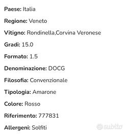 Amarone Della Valpolicella Docg La Groletta Corte Giara Magnum 1.5L Valore 90€