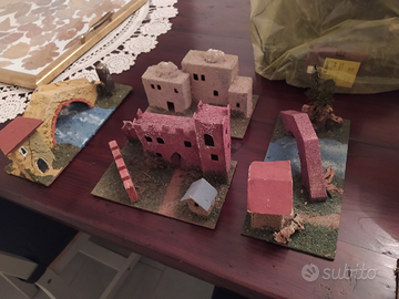 Vendo per inutilizzo ambientazioni presepe: capanna, due con casetta e ponte, angolo legnaiolo, casette mediorientali, castello re Erode, Borghetto di tre case. Non spedisco, no perditempo. Lotto intero