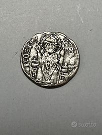 è un'antica moneta medievale, un "Ambrosino" d'argento coniato a Milano durante il periodo della Prima Repubblica (1250-1310).