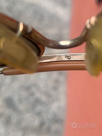 Le lenti marroni sono originali da sole con scheggiatura interna prossimità attacco asta sinistra (vedi foto) e qualche riga su entrambe prossimità ponte.