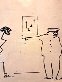 Spiritoso inchiostro del 1952 eseguito per la rivista Il Mondo,dove Bartoli,acerrimo nemico dell'Arte Astratta,prende in giro un tizio che scambia una scultura per un attaccapanni.