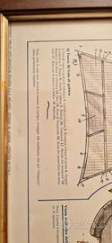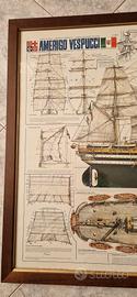 Quadro cornice "piani di costruzione e il profilo della nave scuola della Marina Militare Italiana Amerigo Vespucci"