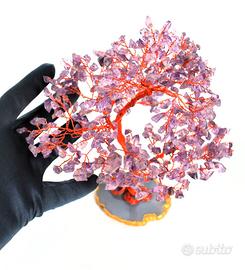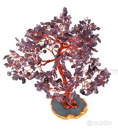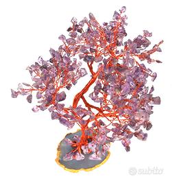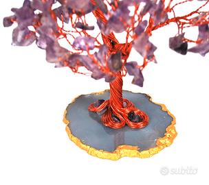 Ametista cristalli-Agata-Rame Albero della vita in cristallo di ametista base in geode di agata e Rame puro 310 g - (1) Brasile-Uruguay-Rame Albero della vita in cristallo di ametista Crocon pietra preziosa base in geode di agata bonsai pietre curative idee regalo per albero dei chakra e cristalloterapia Altezza circa 23 Centimetri larghezza base circa 7,5 cm