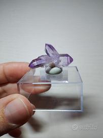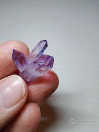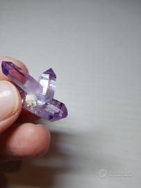 Estetica Ametista di Veracruz, Messico. Le punte sono ben definite. La lunghezza complessiva è di circa 3 cm. Le altre due punte misurano 1 cm e 2 cm circa. Il supporto non è incluso. Minerale naturale ✨