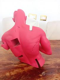 Scultura edizione limitata 50 pezzi Questa scultura è realizzata artigianalmente in Italia, dipinta direttamente dall'artista Questa scultura rappresenta l'amore eterno. l'uomo guarda la sua donna (rappresentata piccola seduta in una "casa" vuota che è il suo cuore). Sul braccio ha un tatuaggio inciso con la scritta latina in caratteri romani "omnia vincit amor", cioè l'amore vince sempre. A rafforzare il messaggio, la scultura ha un aspetto antico e consumato dal tempo, con le sue parti mancanti e crepe.