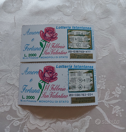 Vendo serie di n.5 biglietti vincenti " Amore e Fortuna " anno 1995.