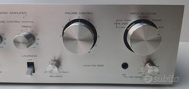 -amplificatore integrato anni 70/80 vintage -marca : KENWOOD -mod.: KA305 -potenza 40wx2 rms -perfettamente funzionante -condizioni buone/ottime -originale -anno 78/80 -stato solido -un bel pezzo di storia -prezzo 150E spedizione inclusa -solo contatto telefonico fabio tel 3396839615