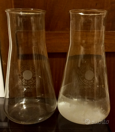 7 ampolle in vetro di varie forme e misure in buone e ottime condizioni più imbuto graduato in plastica con tappo bianco da un litro.in perfette condizioni.