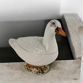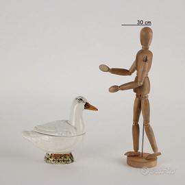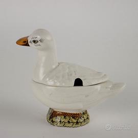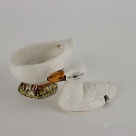 Anatra porta salsa in porcellana dipinta. Marchio della produzione stampato
