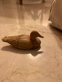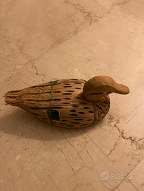 Tre anatre stampi da richiamo per caccia in paglia e legno.