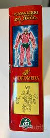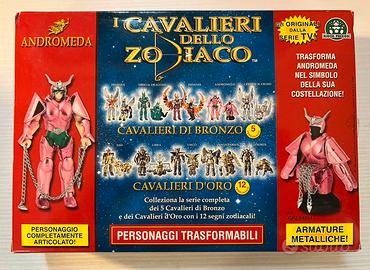 Andromeda (Shun), Cavaliere di Bronzo, completo con scatola originale, blister interno e libretto. Armatura in metallo trasformabile nel simbolo della costellazione. Prodotto Giochi Preziosi del 2000, tenuto in perfette condizioni. Scatola come nuova, solo piccola abrasione a lato(come da foto). Possibile spedizione o ritiro a mano.