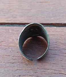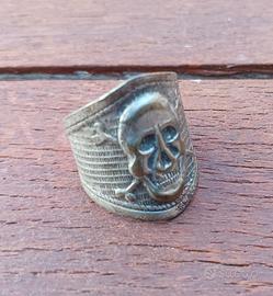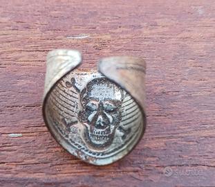 Anello da squadrista in lamiera stampata anni 20 con teschio a sbalzo su fondo zigrinato buono stato di conservazione taglia media