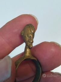 Anello in bronzo Dogon con una testa stilizzata africana.