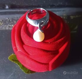 Breil vintage ciondolo o anello in acciaio con perla.