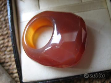 Grandissimo anello di corniola sfaccettata,grande e molto bello,potrebbe essere anello sigillo per com è lavorato bene,un anello che non passa inosservato ,fatto a mano,una scultura in pietra dura da indossare,nuovo,fondo negozio anni'90 ,pezzo unico.Misure: 17,,diametro interno cm 1,7,,altezza cm 2,5,condizioni perfette.Spedisco ovunque,la consegna avviene tra le 24 ore e i 5 giorni ,secondo la formula che sceglierete.