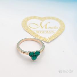 Anello Donna Dorato Con Pietra Verde Misura 17