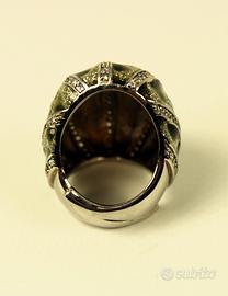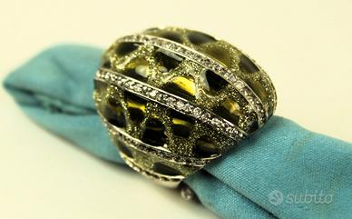 Spettacolare grande anello "vintage " in argento massiccio 925, composto da 7 riviere trasversali di zirconi intrecciate con greche geometriche.