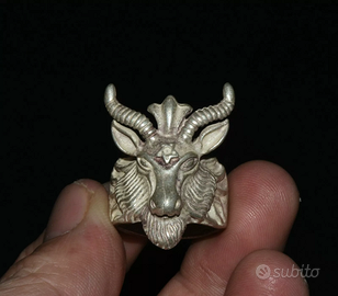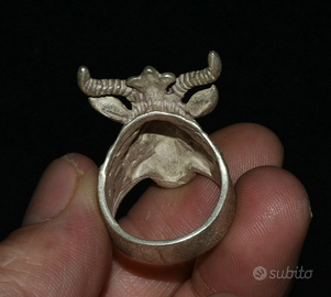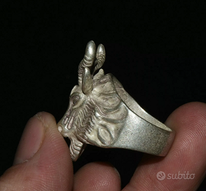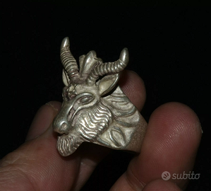 ANELLO COMPLETAMENTE IN ARGENTO , TESTA DI CAPRA E STELLA DI DAVIDE .