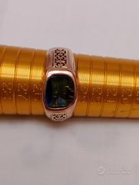 Bellissimo anello d'epoca in oro 9 kt...al interno c'è un incisione FOY o FDY...pietra dura turchese taglio cuscinetto...buone condizioni... misure 25 mm...euro 355