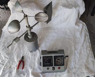 Anemometro professionale, perfettamente funzionante, appena rivisto e ingrassato, meccanica eccellente, la centralina funziona in autonomia con la sua dinamo a manovella o collegata alla rete elettrica, segna intensità del vento e direzione, di facile montaggio con morsettiere numerate,