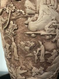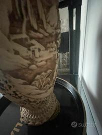 Anfora antica giapponese di annata sconosciuta, ereditata da mio nonno, intatta e bellisisma, robusta che raffigura scene quotidiane, altezza 30 cm, valuto offerte