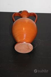 Elegante anfora in ceramica artigianale di manifattura spagnola risalente agli anni ’80, realizzata a mano con tecnica tradizionale. Il corpo slanciato e armonioso, sostenuto da una base ben proporzionata, è arricchito da due manici sinuosi che conferiscono all’oggetto un perfetto equilibrio tra estetica e funzionalità.