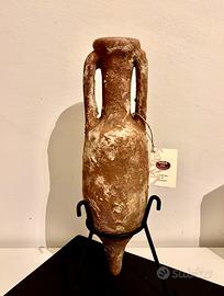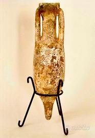 Riproduzione artigianale dell’anfora del Mar Mediterraneo Dressel B. Proveninete dall’Italia centrale tirrenica. Anticamente usata per trasportare il vino. Dimensione: 32cm.