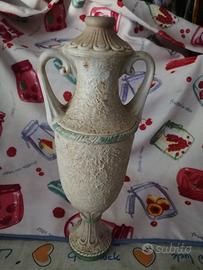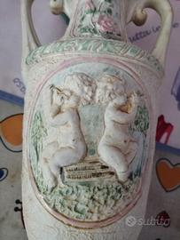 Vendo anfora in gesso dai colori tenui dal beige al rosa al verde. In gesso con rose e angeli detti putti e altri motivi di decorazioni sul bordo superiore e sul fondo. Condizioni ottime misura cm 30..Vige regola visto piaciuto e preso. No perditempo e affaristi grazie!!!