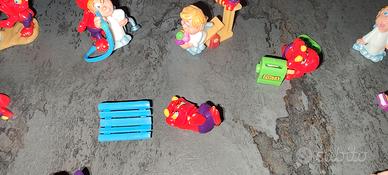 Vari diavoletti e angioletti con accessori: Come la panchina blu, l'idrante e l'altalena.