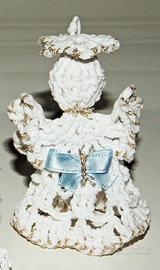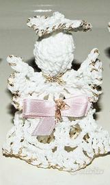Privato vende angioletti nuovi realizzati a mano all'uncinetto con filo di cotone, rifiniti con filo dorato lamè, e fiocco di colore diverso per ognuno (fucsia, rosa e celeste, come foto).