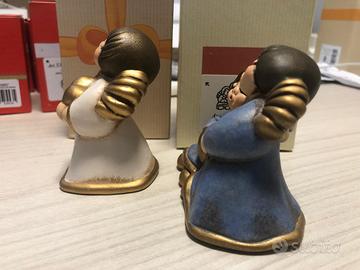 vendo da collezione privata, articoli conformi a foto, coppia angeli blu soft con cuore dorato ed angelo bianco con cuore dorato a base quadrata Thun
