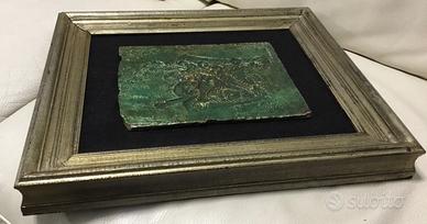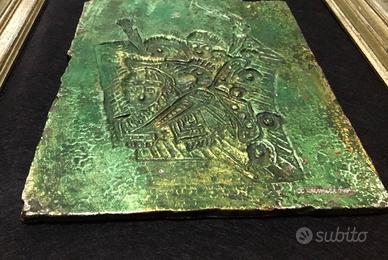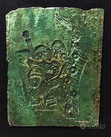 Si tratta di una placca in metallo patinato raffigurante figure di guerrieri, un opera dell'artista Angelo Camerino.