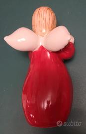 Angelo in ceramica 20 cm circa, vestito rosso e libro dorato, come nuovo