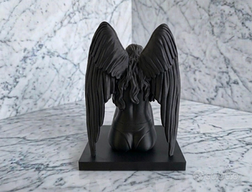 🕊️ FASCINO ICONICO: Una statuetta scultorea raffigurante un angelo con ali piumate che si copre il viso. Una composizione potente ed emozionante, ricca di simbolismo e dettaglio. 🎭 STILE TOTAL BLACK: La finitura nera e uniforme conferisce a questa opera un look minimalista e sofisticato. Perfetta per arredi monocromatici o come pezzo d'accento in contrasto. 🔴⚪ CONTRASTO DINAMICO: La scultura, pur essendo monocromatica, crea un drammatico contrasto visivo se posizionata contro fondali testurizzati o chiari, come una parete in marmo. 💎 DETTAGLI METICOLOSI: Ogni piuma delle ali e ogni piega della veste è resa con una precisione