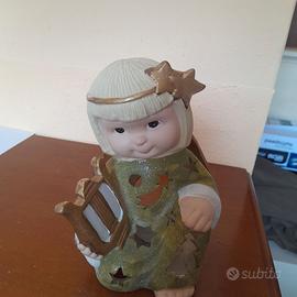 Angelo portalumini in terracotta h. cm. 17 x cm. 12, vintage