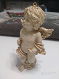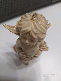 Angelo vintage primi del '900 bellissimo nei suoi particolari ed espressione del viso, in origine probabilmente andava a appeso, come si vere dal piccolo anello in metallo sulla testa. Presenta una piccolissima scorzatura sulla punta del naso dovuta al tempo, che nell'insieme non disturba l'estetica dell'angioletto, che risulata comunque bellissimo, osservare i particolari del corpo e la cura nella lavorazione. Materiale difficile a dirsi gesso o ceramica. alto 12 cm , largo 8 cm apertura ali