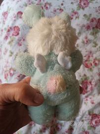 Angelorso famoso - Peluche coniglietto vintage anni '80 VIR originale con cuore A e ali da angioletto Descrizione: ❤️ Angelorso famoso! Il mitico peluche degli anni '80 che tutti cercavano da piccoli! ❤️ Si tratta di un coniglietto Angelorso/Angelosos (variante rara della famosa serie di orsetti angelici VIR). Colore: testa e orecchie bianche morbidissime, corpo azzurro chiaro Dettagli: nasino blu, occhietti neri vivaci, cuore bianco con grande "A" rosa e stelline blu sul petto ALI DA ANGIOLETTO bianche cucite sulla schiena (il dettaglio che rende unico l’Angelorso!) Orecchie lunghe e flosce tipiche del coniglietto Angelorso Tag originale bianco ancora attaccato Altezza: circa 25-28 cm (perfetto da abbracciare) Prodotto originale VIR Spagna (distribuito in Italia come Angelorso), anni 1984-1986 circa. È un pezzo di nostalgia pura anni '80, parente stretto dei Care Bears ma molto più raro nella versione coniglio con ali! Condizioni: appena lavato e igienizzato, ottimo stato vintage, pelo morbidissimo e pulitissimo, niente odori o danni. Solo qualche segno leggerissimo del tempo (normale per un peluche di 40 anni). Pronto per essere coccolato da un nuovo bambino o per arricchire una collezione! Prezzo: 15 € (prezzo fisso) Spedizione: disponibile con imballo sicuro (costo a carico acquirente) o ritiro a mano [città/provincia] Perché comprarlo? È un pezzo da collezione introvabile a un prezzo super accessibile, completo di ali da angioletto originali! Perfetto per chi ama i giocattoli vintage o per un regalo nostalgico.