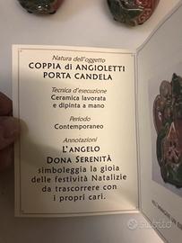 Coppia di angioletti porta candela, nuovi , ceramica lavorata a mano periodo contemporaneo, prezzo per la confezione con due pezzi