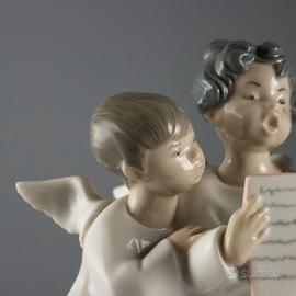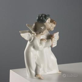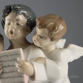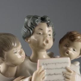 Scultura in porcellana raffigurante tre angioletti che cantano. Sotto la base