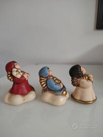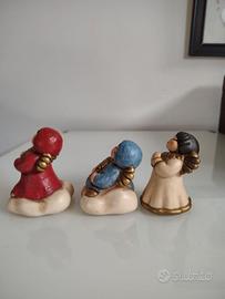 Lotto 3 Angioletti THUN Originali - Ceramica Dipinta a Mano - 6 cm Descrizione: Vendesi splendido set di 3 statuine originali THUN (Bolzano). Le figure rappresentano tre angioletti in diverse pose e colori (rosso, blu e bianco/oro), rifiniti con i classici dettagli dorati del marchio. Marca: THUN (autenticità garantita dal marchio impresso sulla base e bollino oro). Dimensioni: Altezza circa 6 cm ciascuno. Condizioni: Ottime, senza scheggiature o segni di usura evidenti (come da foto). Prezzo per il lotto: 35 € non trattabile