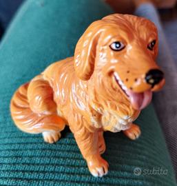 Sono di plastica morbida tipo gomma. Raffigurano un labrador e un golden retriever di circa 7 cm e un gatto lungo 10 cm che suona quando viene premuto