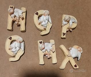 6 pezzi Annekaboule alfabeto con angioletti in ceramica nuovi ma senza confezione e gli adesivi con il tempo si sono staccati alti 5cm