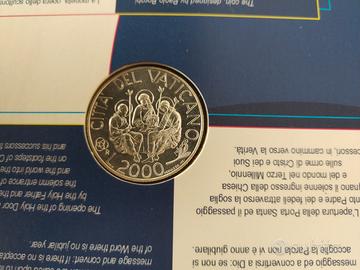 VATICANO: LIRE 2000 - Anno Santo 2000, moneta in argento 0,835 di gr.16 FdC in confezione originale. Nel prezzo è compresa spedizione con posta 1.