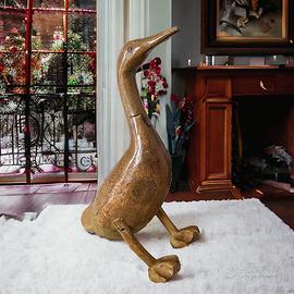 Anatre ne abbiamo?? SI!! 👀🐤🐦 magica questa antica anatra in legno, realizzata artigianalmente probabilmente da un papà per il suo bambino, ha tutto il sapore delle cose di una volta. La testa si lega al corpo ad incastro, alle zampe sono state messe piccole viti in epoca più moderna, forse dopo un cedimento, ma in piedi benissimo! È di un legno pesante e trattato per diventare lucido. Molto evocativa 🌺 sta bene su qualsiasi mensola e mobile. Le dimensioni: cm 35 lunghezza 26 altezza.