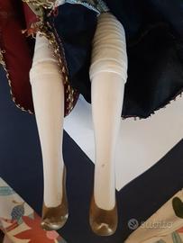 Antica bambola tedesca in ceramica e tessuti preziosi cm 44